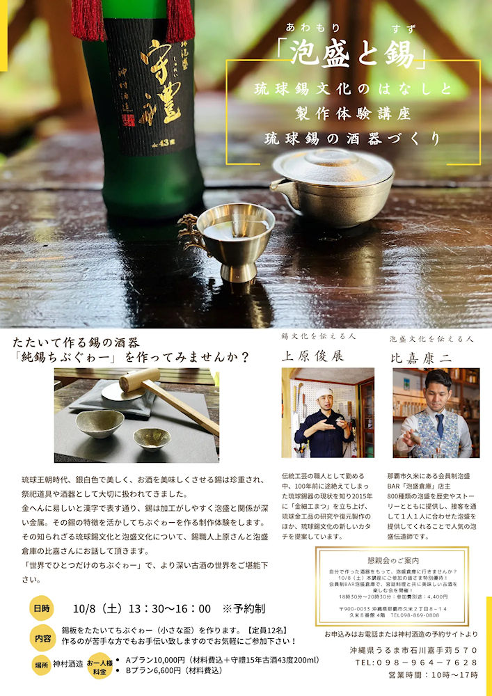 2026年1月24日(土)神村酒造(うるま市石川)で「泡盛と錫」をテーマにイベントを開催します。
